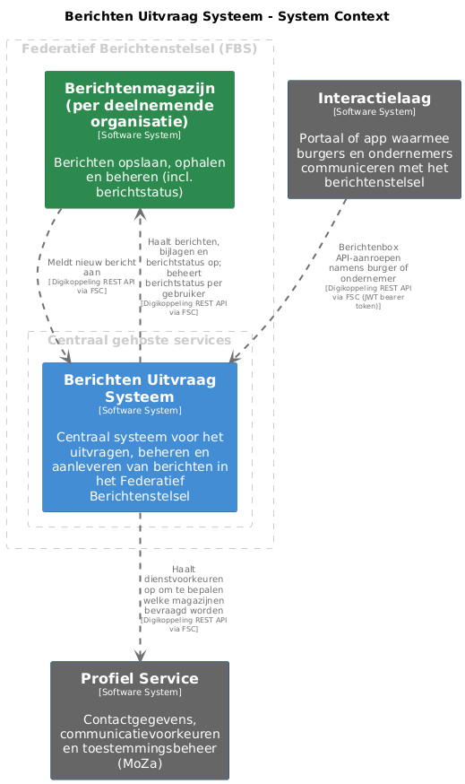 Berichten Uitvraag Systeem - System Context [